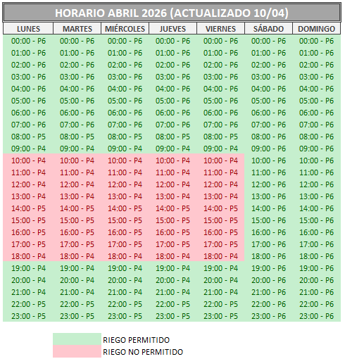 • HORARIOS DE RIEGO 7 de abril de 2026